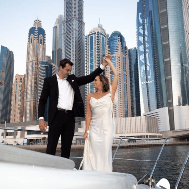 Picture this: You and your partner aboard a private luxury yacht, champagne in hand, watching the sun set over Dubai’s glittering skyline. The gentle waves, the soft music, the privacy of your own floating paradise – this is how love stories are celebrated in style.