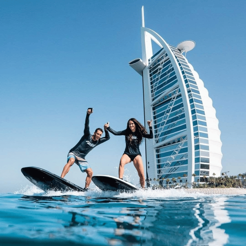 Flyboarding is a futuristic water sport that lets you rise above the sea using water propulsion.