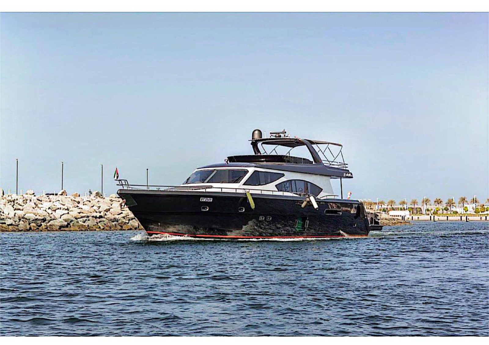 The Dubai Marine 90 Black Yacht is a bold 90-foot luxury motor yacht featuring a sleek black exterior, modern design, and powerful performance. With spacious outdoor decks, an elegant contemporary interior, and generous accommodations, it is ideal for luxury cruising, private events, and premium charter experiences.
